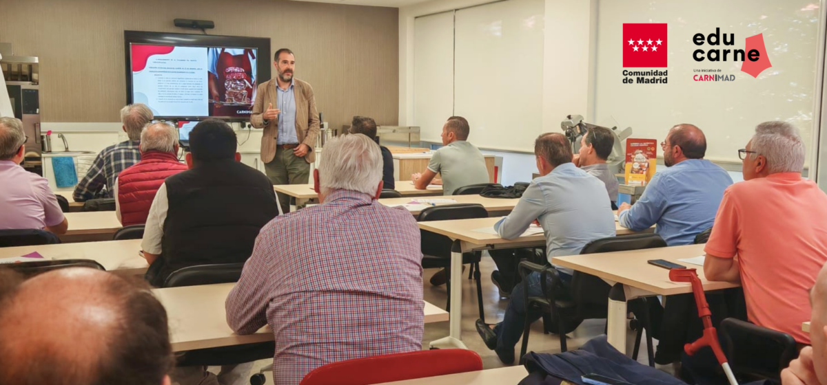 Ayer, 14 de octubre, se celebró en nuestro espacio EDUCARNE la jornada informativa “Aspectos legales del relevo generacional en el comercio tradicional de la carne y derivados”, dirigida a asociados de Carnimad, gracias al convenio de colaboración firmado con la Consejería de Economía, Hacienda y Empleo de la Comunidad de Madrid para la asistencia técnica en materia de ordenación, promoción y fomento de la actividad comercial.
