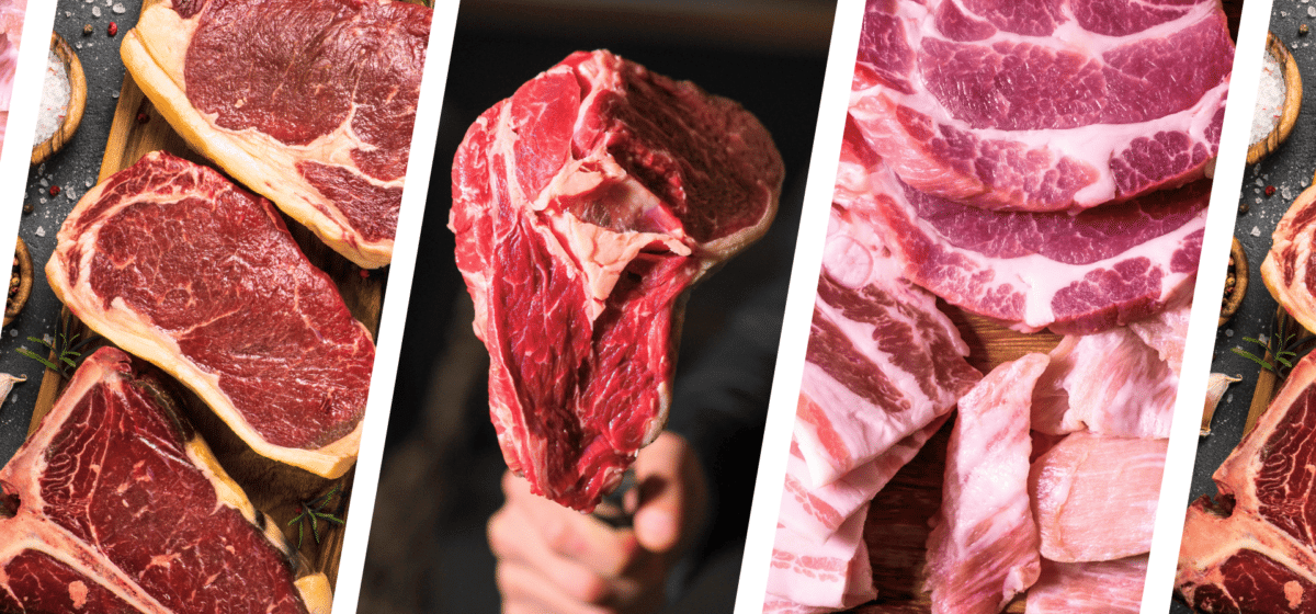 El color característico de la carne se debe principalmente a la presencia de mioglobina, una proteína localizada en el tejido muscular de los animales. Su función es almacenar oxígeno en el músculo y su concentración no es uniforme. Factores como la especie, la edad, el tipo de alimentación e incluso la parte del cuerpo de la que procede el corte influyen directamente en la intensidad del color. Las zonas con mayor actividad muscular, como las extremidades, suelen presentar tonos más oscuros debido a una mayor cantidad de esta proteína.